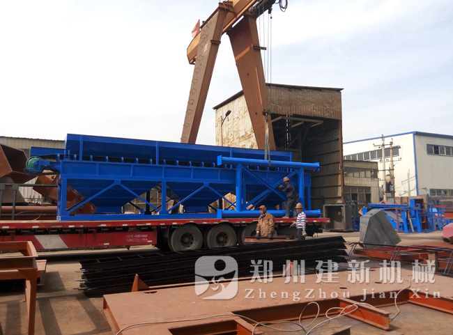 mk足球-mk(中国)制造有限公司货场上,一台PLD1600三仓砂石配料机正在做着最后的检验工作,准备发货。据了解,这台PLD1600砂石配料机与前两天发出的JS1000混凝土mk足球-mk(中国)机是同一批设备,为一套HZS60混凝土mk足球-mk(中国)站。